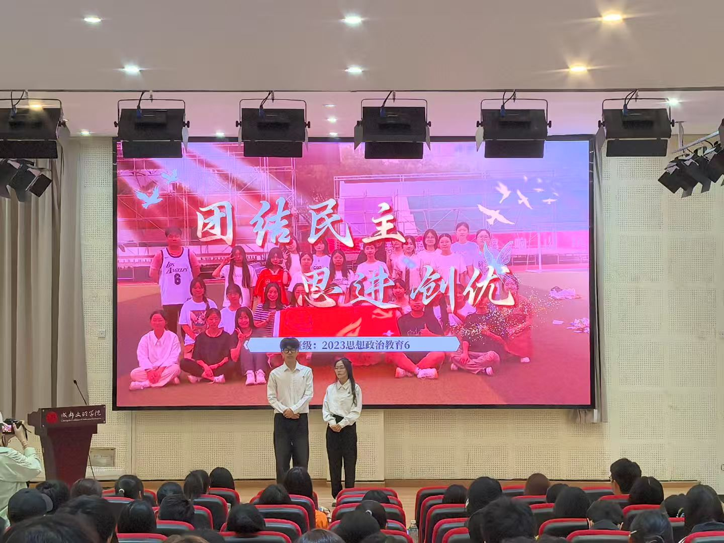 参与答辩的班级通过详实的数据、丰富的案例和精美的图文详细展示了各班在学风建设、班级管理、社会实践等方面的成就,生动展现各班的凝聚力与青春活力。紧接着,评委们结合各班自述内容进行现场提问,同学们沉着应对,思路清晰,展现出良好的临场应变能力。