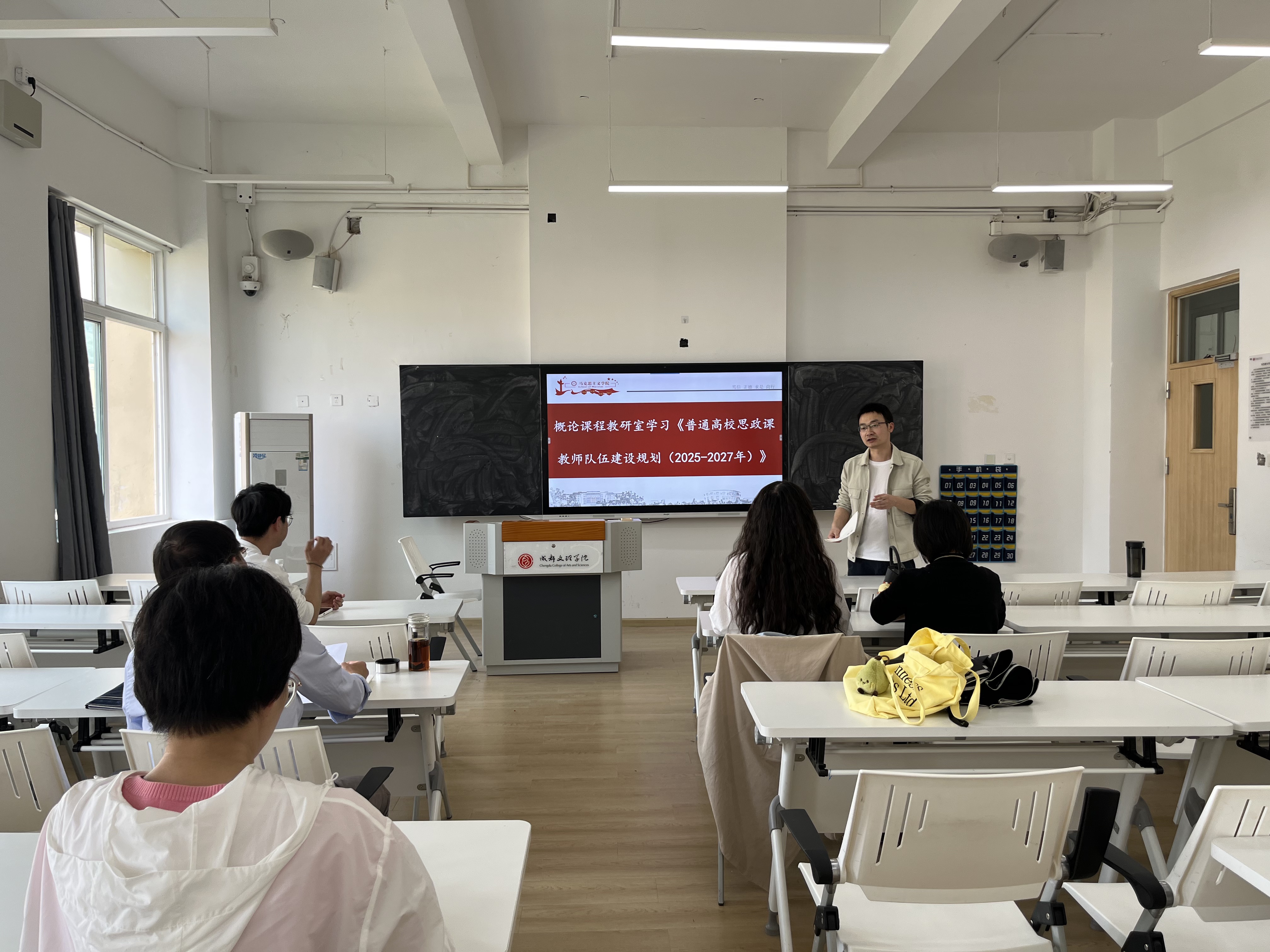 活动中,陈果带领全体教师学习了《习近平总书记关于公司思政课建设系列重要指示》《普通高校思政课教师队伍建设规划(2025-2027年)》等内容。