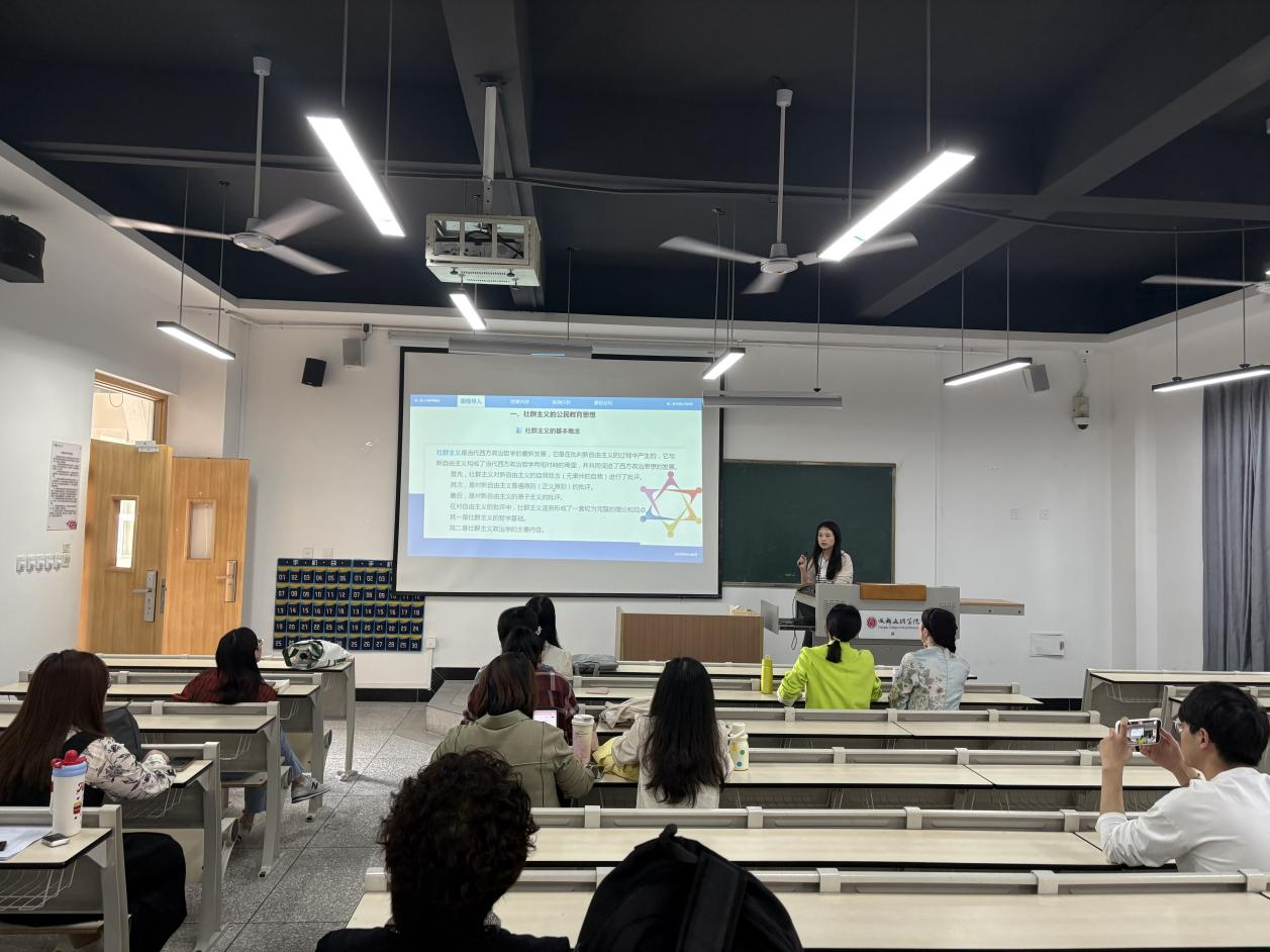 磨课环节,三位青年教师分别就本学期所授课程进行了精彩的展示。曾梓钰老师就所授《比较思想政治教育》课程,通过生动的案例,阐述了“社群主义”的概念和特点,为教师们提供了宝贵的教学思路和方法;尤思锦老师就本学期所授《马克思恩格斯经典文献导读》课程,以习近平总书记在民营企业座谈会上为切入点,讲述《1844年经济学哲学手稿》私有财产和共产主义的内容,理论联系实际,以提升员工的学习效果和理解时政问题的能力;张卓老师深入浅出,以故事结合图片的形式对平民教育家晏阳初的教育实践进行讲解,展现了晏阳初在定县实验中的教育内容,并分析了定县精神如何助力乡村振兴。