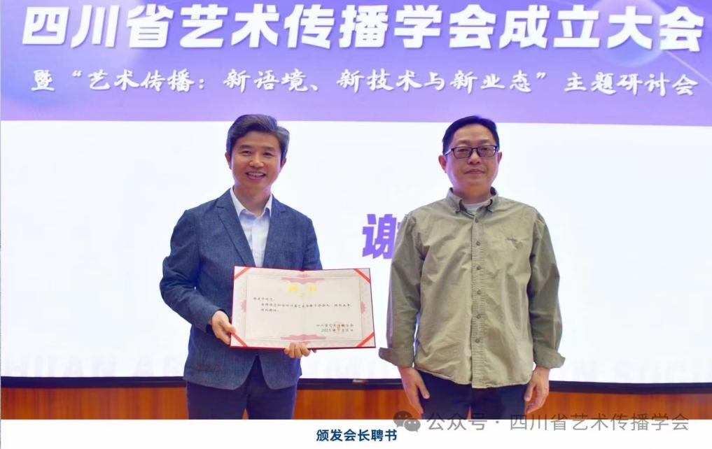 四川省艺术传播学会于 2025 年 2 月经相关部门批准成立,是在四川省民政厅注册、由四川省文联主管的省一级学会。该学会以决策咨询、学术研究、行业交流,以传承中华优秀传统文化,讲好中国故事为主要方向。成立仪式上,四川省艺术传播学会首任会长、四川师范大学影视与传媒公司副经理谢建华为刘传金颁发聘书。