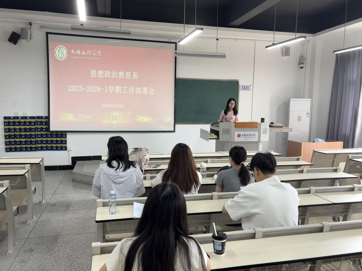 会议伊始,柴续续主任通报了本系近期取得的阶段性成果:在全体教师协作下,顺利完成"我眼中的新时代"主题作品报送、川渝师范生教学技能竞赛初赛组织及2026届毕业生论文开题答辩工作。随后,会议重点部署以下工作:一是统筹备战师范生技能大赛、"田家炳"杯教学技能竞赛等多项赛事;二是对2025年版人才培养方案开展修订完善;三是开展校级一流本科专业建设点阶段性检查。