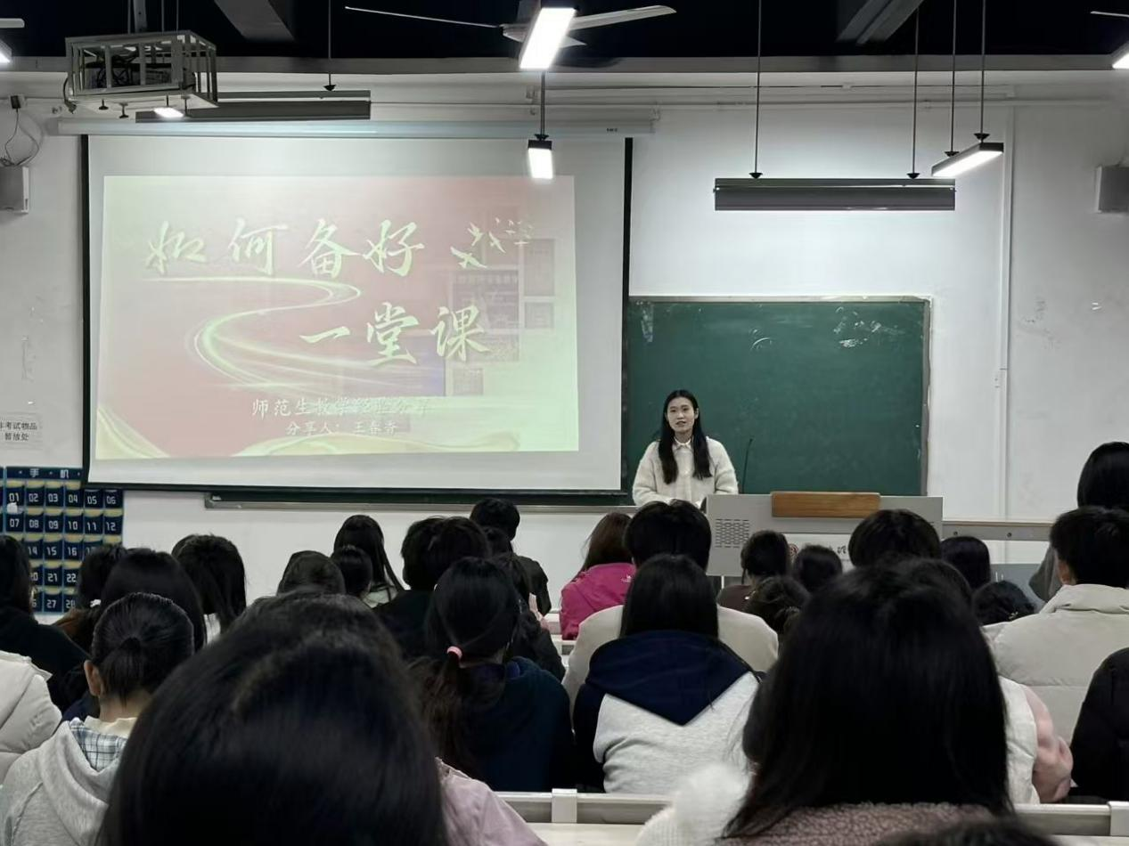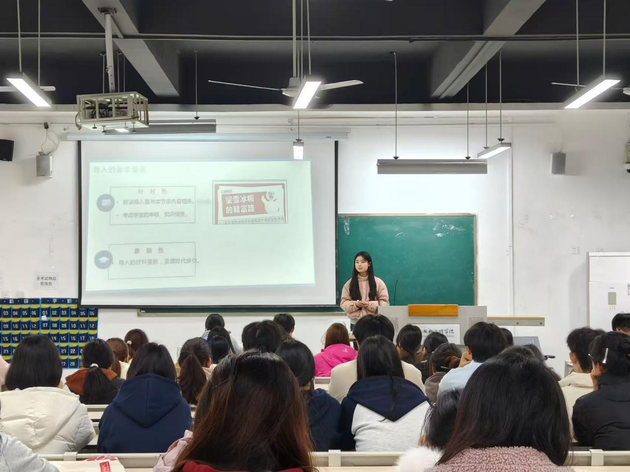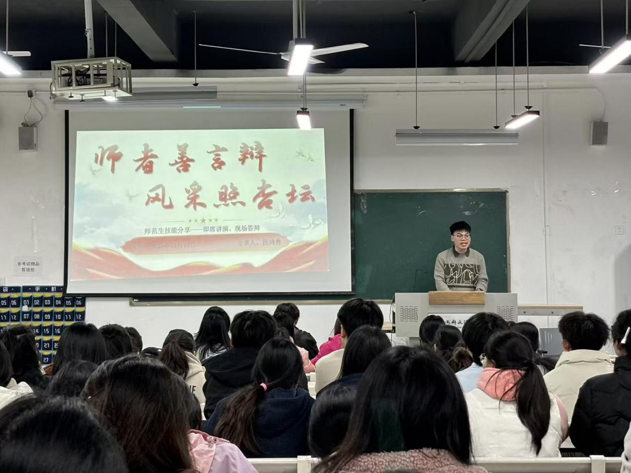 培训会伊始,贺雨诗作动员讲话。她指出,师范生技能大赛不仅是检验教学成果、展示教师素养的重要平台,更是师范生迈向讲台、锤炼教学本领的关键一步。“讲好一堂思政课,不仅需要扎实的理论功底,更需要巧妙的教学设计、生动的语言表达和真诚的教育情怀。”她强调备赛过程本身就是一次深刻的教学实践与自我成长,鼓励同学们珍惜机会,把每一次练习都当作真实的课堂来对待,在反复打磨中提升教学综合素养,努力成长为新时代高素质的思政课教师。