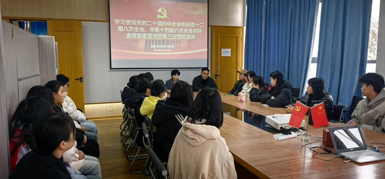 为切实发挥马克思主义理论学科的社会服务功能,推动党的创新理论深入基层、指导实践。12月26日,公司副教授、金堂县委宣讲团成员张翠翠赴金堂县栖贤街道及所辖社区,开展党的二十届四中全会及省、市全会精神系列宣讲活动,将公司的理论研究优势转化为服务地方发展的生动实践。